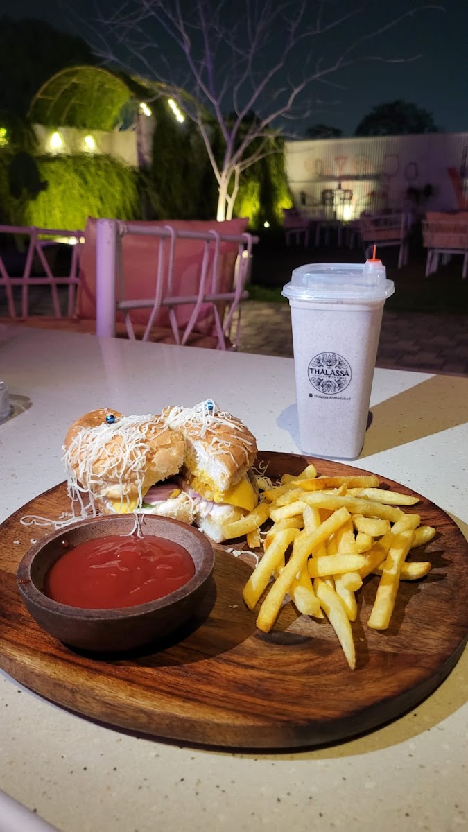 Nestled near Shela Bridge on Mumatpura Road, Thalassa Cafe presents a vibrant haven for coffee lovers and food enthusiasts in Ahmedabad. This cafe captivates with its delightful atmosphere, making it a go-to spot for anyone looking to unwind, socialize, or simply enjoy quality cuisine.